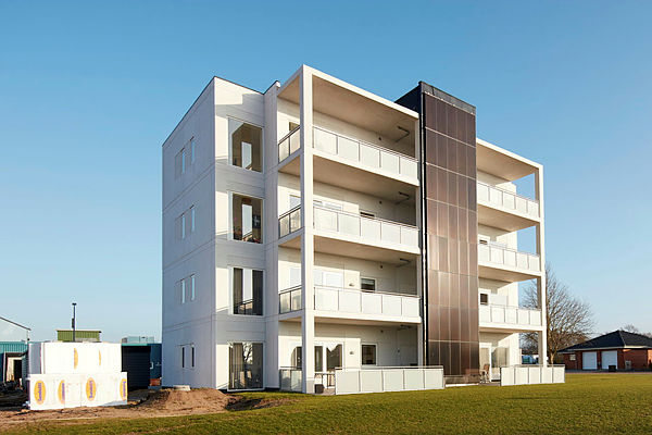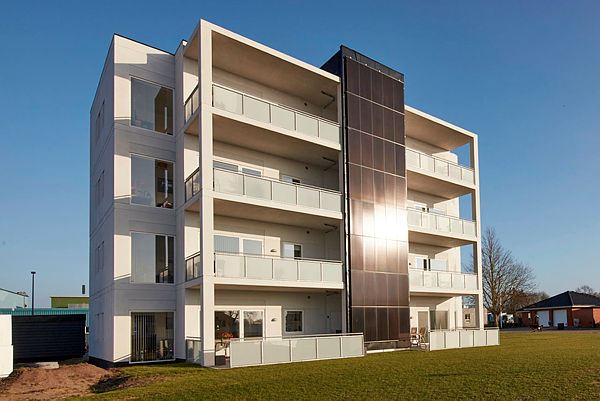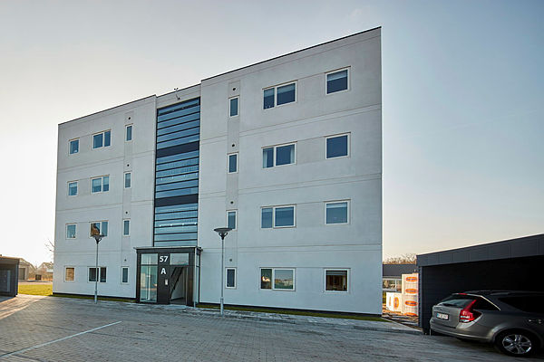 Nygade 57 A-B-C er bygget som 3 punkthuse med elevator fordelt på 4 etager. Alle lejligheder har altan med et lille depotrum. Solcelleanlæggene bidrager til et lavt energiforbrug. Der er carport til hver bolig og der er mulighed for leje af et ekstra kælderrum.
