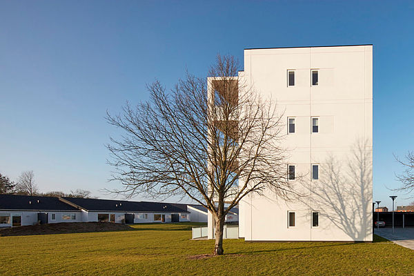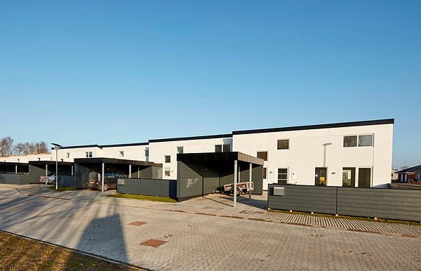 24 lejligheder på Nygade 57 A-B-C og 8 rækkehuse på Bækkevangen som er bygget på den gamle slagterigrund i den nordlige ende af Skjern.